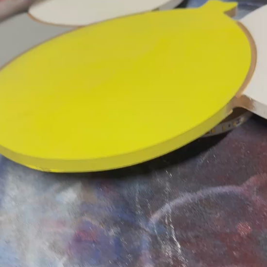 Realizzata in MDF tagliato a CNC e rifinita a mano, unisce design e funzionalità in un’unica soluzione luminosa.